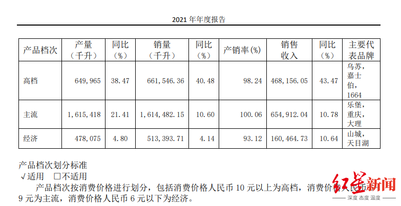 财报显示,2021年,重庆啤酒国际品牌营收增长21.77%至45.15亿元,销量增长14.05%至72.91万千升;本土品牌营收增长20.28%至83.2亿元,销量增长15.47%至206.03万千升。