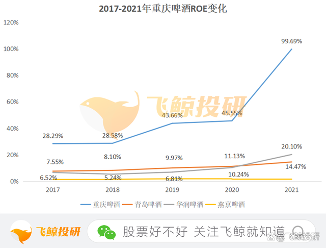 即便如此,飞鲸投研发现重庆啤酒的业绩仍持续增长,净资产收益率也是高得惊人,背后的原因究竟是什么呢?
