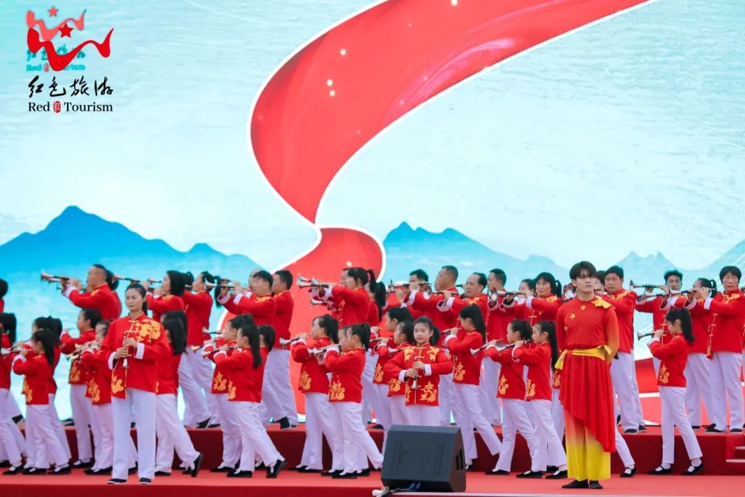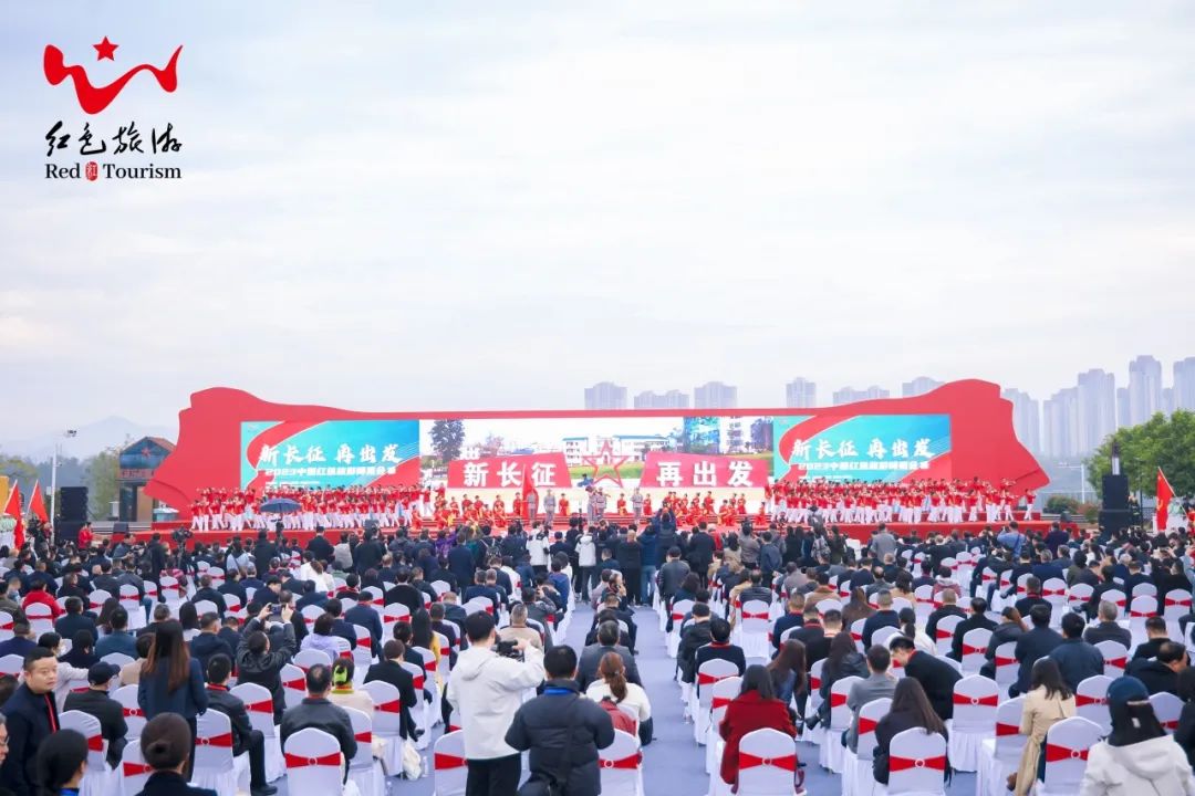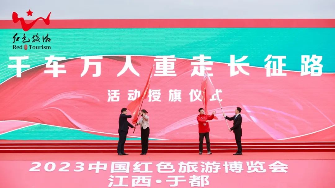 开幕式上,江西省文化和旅游厅党组书记、厅长梅亦发布《讲好新时代红色故事·江西倡议》,赣湘两省领导共同为“千车万人重走长征路”活动授旗。