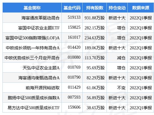 其中持有数量最多的基金为海富通改革驱动混合,目前规模为152.43亿元,最新净值2.4168(5月18日),较上一交易日下跌0.62%,近一年下跌3.41%。该基金现任基金经理为周雪军。