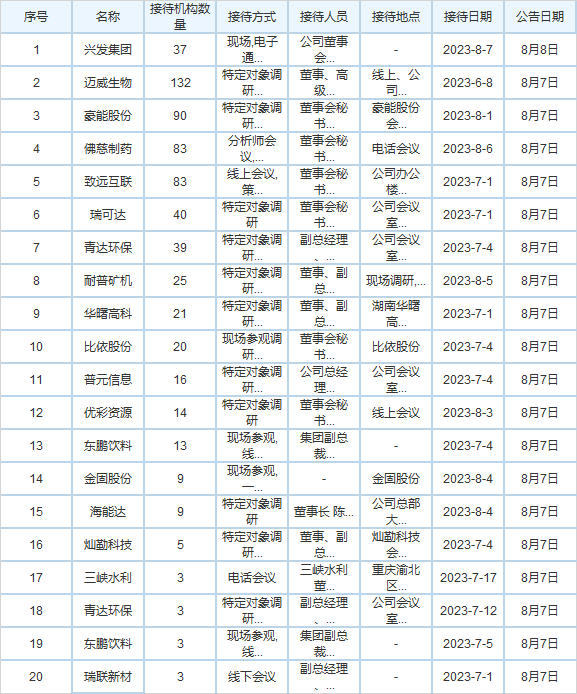 重点机构:华夏基金、淡水泉、泉果基金、混沌投资、鹏华基金