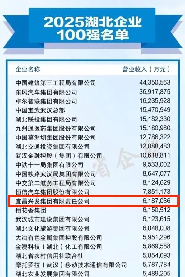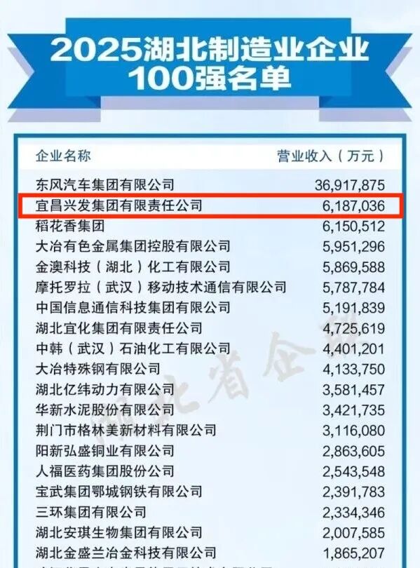 兴发集团位居2025湖北企业100强名单第14位,位居2025湖北制造业企业100强名单第2位。排名较去年均提升3位。