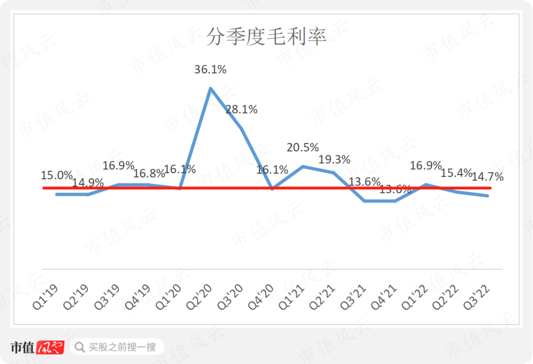同样的,2022年的分季度毛利率也已经恢复到了2019年的正常水平。