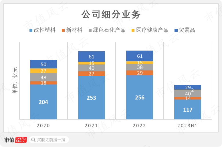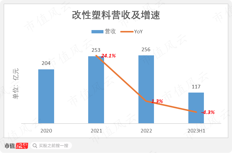2023年上半年,改性塑料业务营收117亿元,同比下滑4.3%。