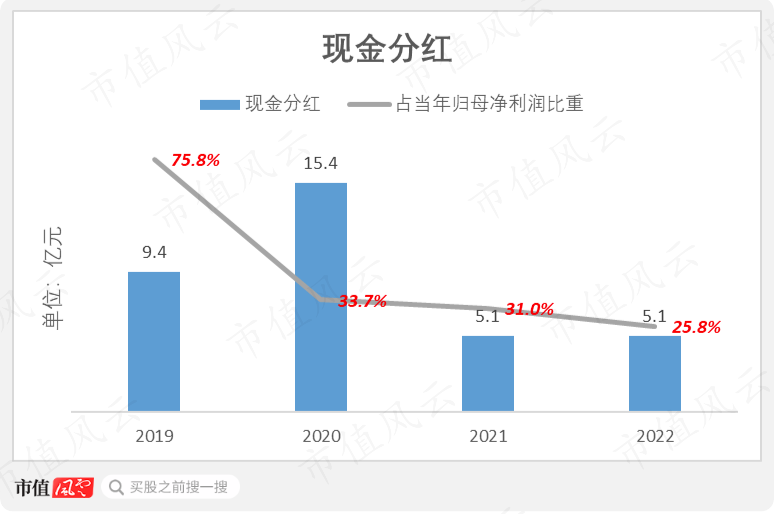 自2004年上市以来,公司无论高峰低谷,“雷打不动”坚持现金分红。但是受到近年来大额资本开支的影响,2022年分红率为25.8%,较之前略有下降。