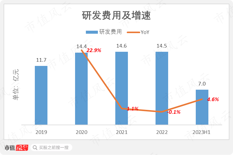 长期以来,公司对研发的持续投入值得肯定。公司多数年份的研发费用保持增长,2020-2022年维持在14亿元以上。2023年上半年,研发费用7亿元,同比增4.6%。