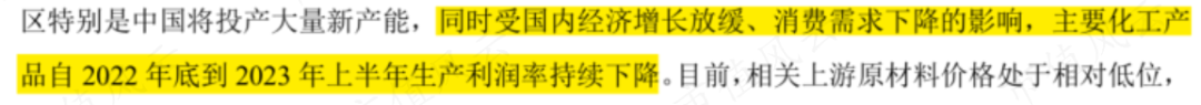 据披露,从整个行业来看,2022年底至2023年上半年,主要化工产品的生产利润率持续下降。
