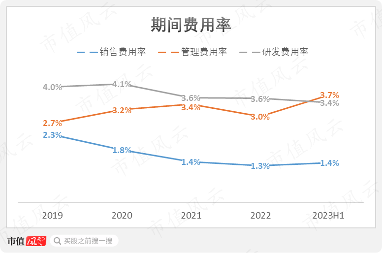 2023年上半年,管理费用率、研发费用率和销售费用率分别为3.7%、3.4%和1.4%,与去年同期相比变动不大。