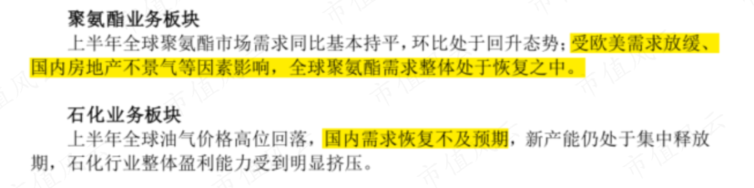 万华化学则表示,多个业务板块的“需求整体处于恢复之中”、“国内需求恢复不及预期……盈利能力受到明显挤压”。