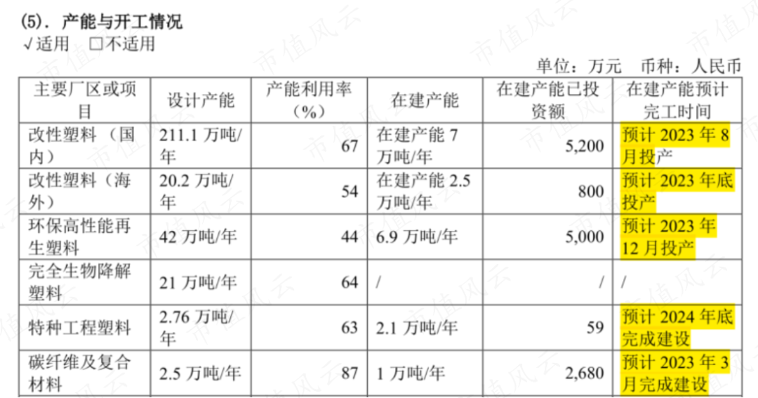近年来,公司积极扩充产能。据披露,多个在建项目预计在2023年下半年至2024年陆续投产。