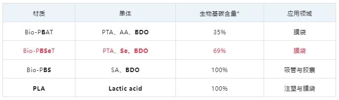除了生物基BDO,金发科技还研发生物基PBAT、PBS,以及新型生物基塑料——PBSeT。以下是金发生物4种生物基产品: