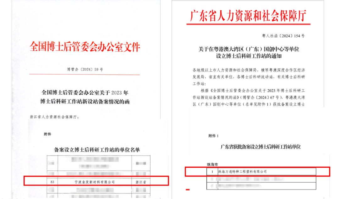 近日,金发科技集团在博士后科研工作平台建设方面再传捷报,经全国博士后管委会办公室核准,获批新设立2个国家级博士后科研工作站。