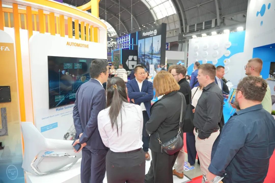 无论是助力汽车轻量化的生物基聚酰胺,提升家电美学与环保性能的免喷涂材料,保障玩具安全的无毒新材料,还是推动包装可持续发展的PCR再生塑料,以及应用于电子电工领域的特种工程塑料,金发科技的展品都吸引了众多观众驻足咨询。我们欣喜地看到,欧洲市场对高性能、环保、创新的材料解决方案抱有浓厚兴趣。