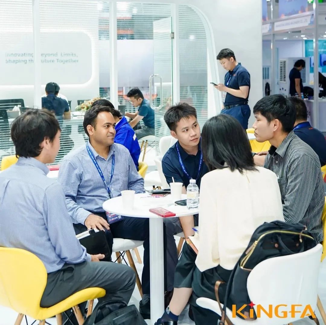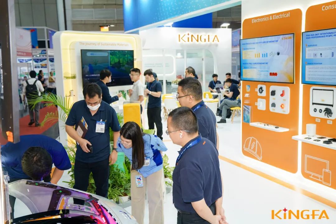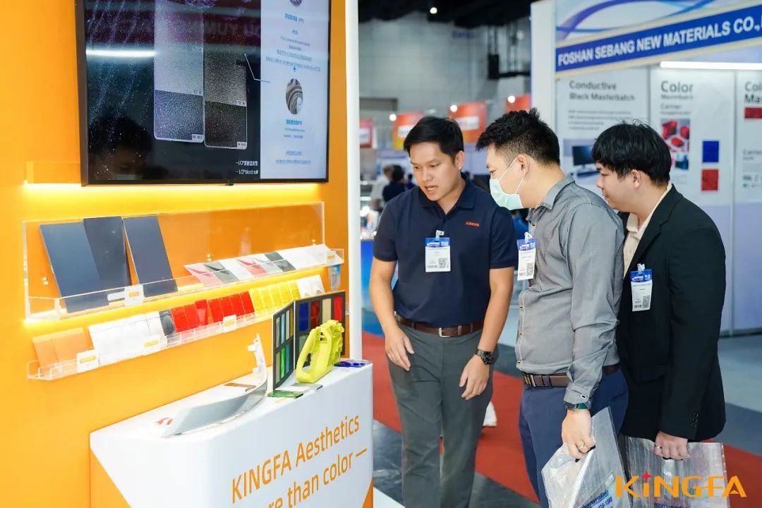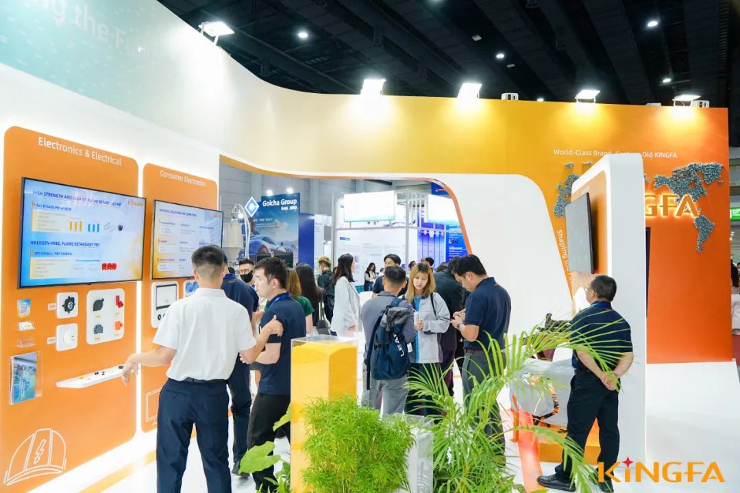 客户们驻足交流、频繁问询,对产品性能与应用前景高度认可,现场洽谈氛围火热,彰显金发科技创新实力与产品魅力。