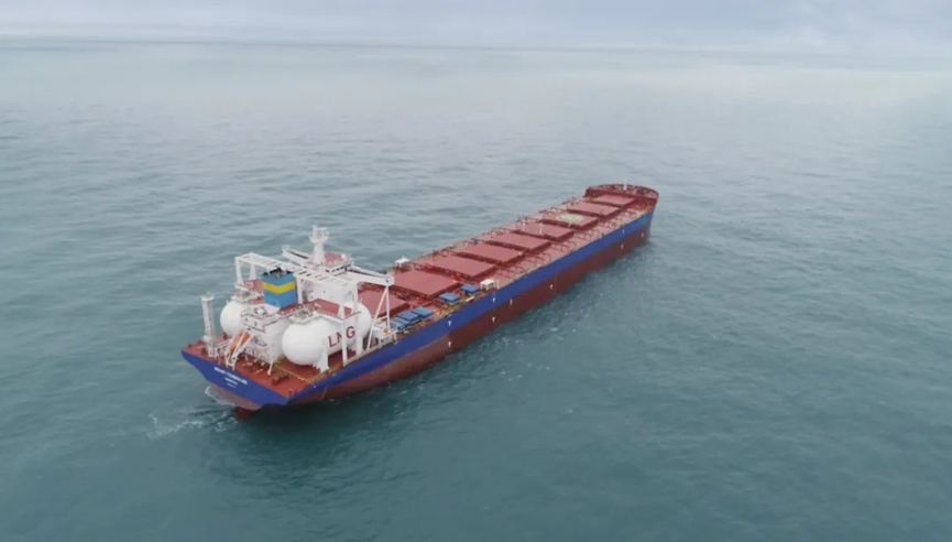 该项目船型采用外高桥造船自主设计的LNG动力双燃料散货船,船舶总长292米、型宽45米、型深24.9米、设计吃水16.1米,满足国际海事组织TIER III排放标准要求和EEDI 三阶段标准,配备LNG动力双燃料主机,具有节能环保的性能优势。