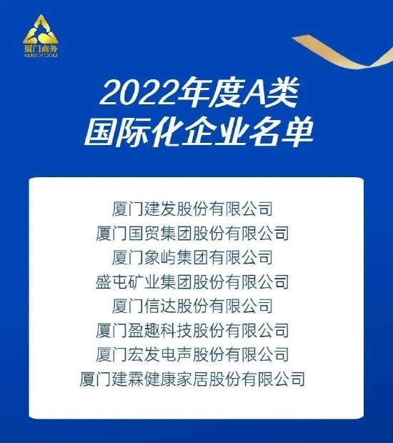 11月15日,厦门市商务局召开“厦门市商务局推进对外开放系列措施”新闻发布会,现场发布了“2022年度A类国际化企业名单”。作为中国领先、全球布局的供应链运营服务商,建发股份(600153.SH)凭借多年来在国际化领域的持续发力、深耕全球市场积累的行业优势荣登该名单。