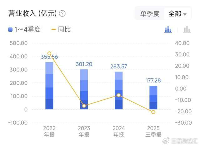 业绩表现上,永泰能源呈明显波动态势。2022年至2024年,永泰能源实现净利润分别为355.56亿元、301.2亿元、283.57亿元。归母净利润分别为19.09亿元、22.66亿元、15.61亿元。