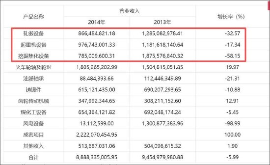 一方面,公司的主业2014年开始恶化,相关板块出现大幅下滑。2014年,公司轧锻设备、起重机设备、挖掘焦化设备等主业基本盘分别下滑32.57%、17.34%、58.15%。值得注意的是,此时公司部分产品库存远超销量。