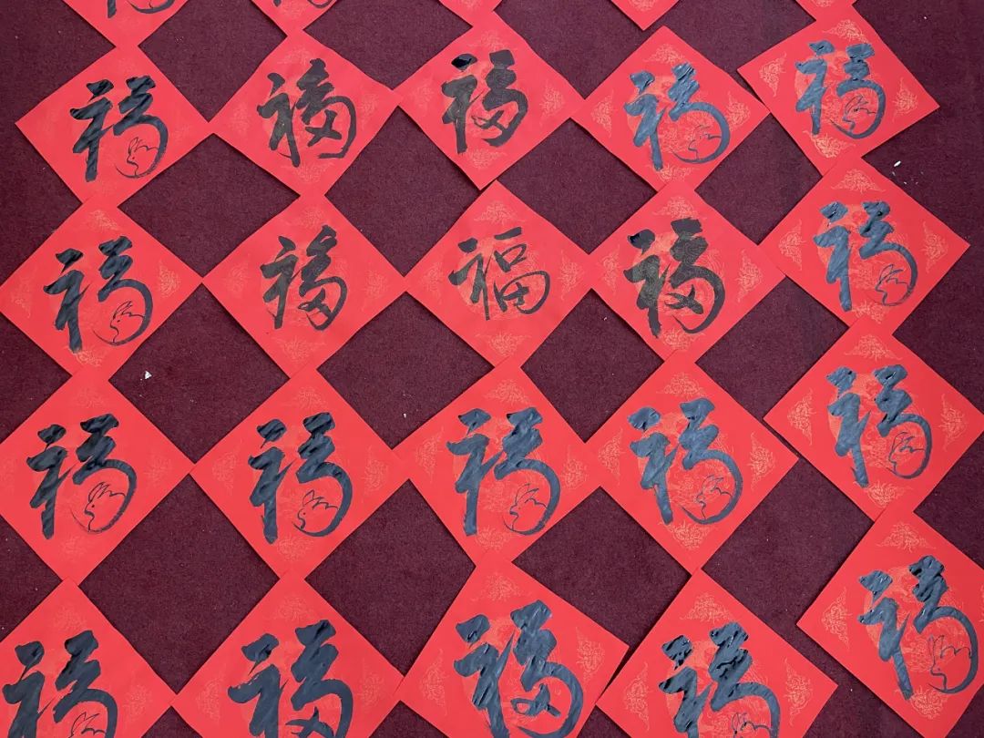 活动现场暖意融融,书法爱好者们铺好红纸,蘸饱墨汁,认真书写着一副副带着墨香和美好祝福的春联。他们凝神聚气、挥笔如神、笔走龙蛇,一个个苍劲有力的书法字体跃然纸上。