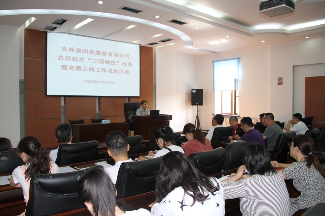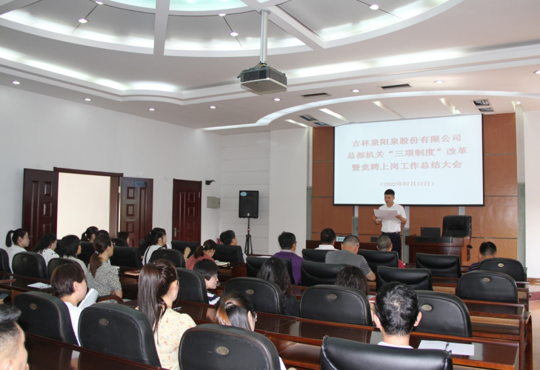 工作要求,结合公司“三项制度”改革岗位竞聘的实际情况,7月12日上午,吉林泉阳泉股份有限公司召开“三项制度”改革竞聘上岗员工集体廉政谈话会议。会议由公司党委副书记、纪委书记、工会主席王炳平主持,公司高管和机关全体干部员工参加会议。