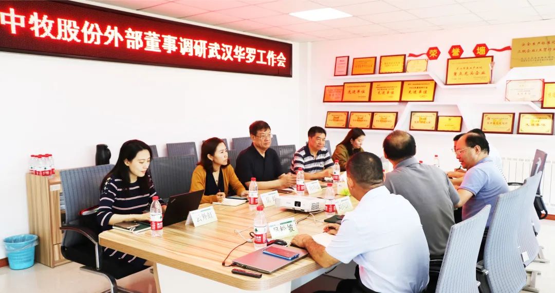 8月3日,中牧股份外部董事李学林、唐功远、岳虹一行到武汉华罗调研指导,公司党委副书记、董事会秘书、工会主席郭亮和预混料事业部总经理刘向阳陪同调研。
