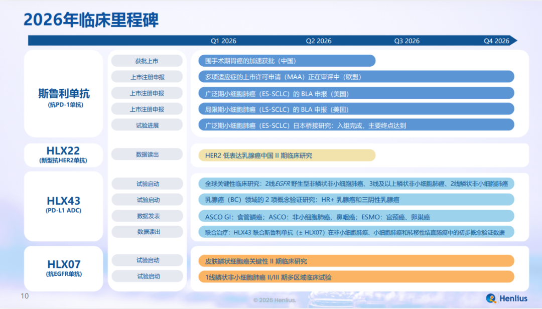 Henlius also outlined clear timelines and development plans for its key innovation assets in 2026:
