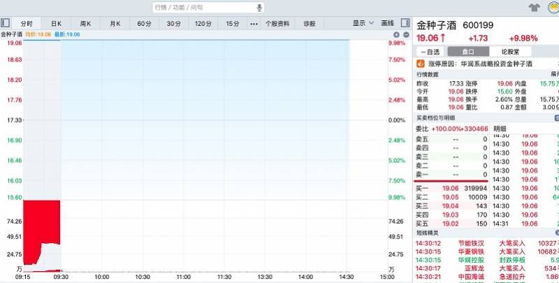 虽然股票涨停,但华润入股金种子酒的消息被怀疑“提前抢跑”。