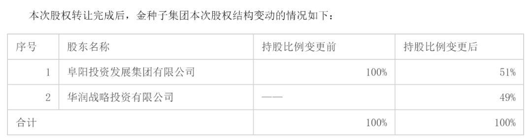 金种子酒还在公告里说,这次交易不会导致公司控股股东和实际控制人变更,控股股东仍为金种子集团、实控人仍为阜阳市国资委。