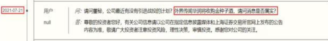 去年7月,就有投资者在网上说,传闻华润将收购金种子酒。消息早就有,只不过现在在板上钉钉了,而有人在正式官宣之前进场了。