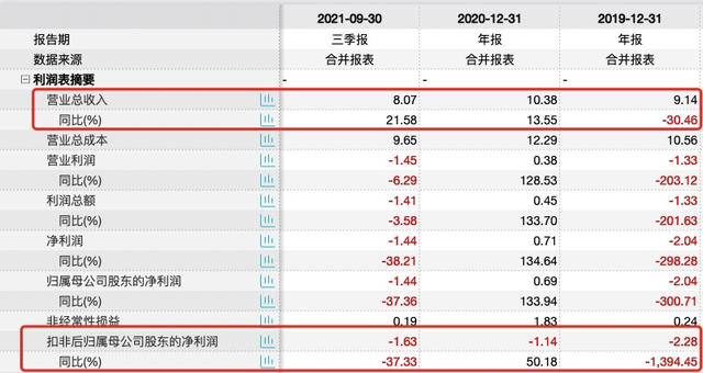 值得注意的是,这已经是金种子酒第三年扣非归母净利亏损。wind数据显示,2019年和2020年金种子酒营业收入分别为9.14亿元和10.38亿元,同比增速分别为-30.46%和13.55%;同期扣非归母净利分别为-2.28亿元和-1.14亿元,同比增速分别为-1394.45%和50.18%。