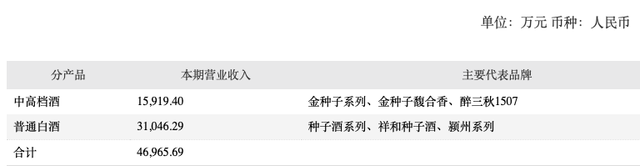 公开资料显示,金种子酒主要从事白酒和其他酒生产,公司白酒产品主要有浓香型白酒金种子系列酒、种子系列酒、和泰系列酒、醉三秋系列酒和颍州系列酒,馥合香型白酒金种子等。