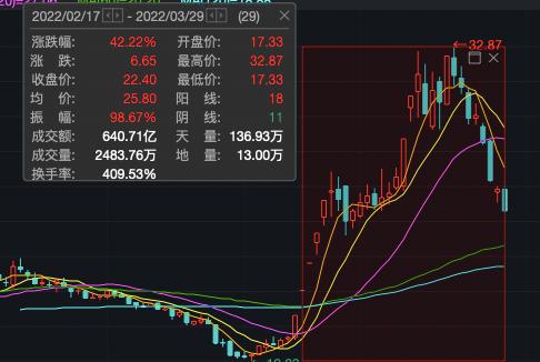 从第一次发布交易异常波动公告起,到3月18日金种子酒股价达到最高32.87元/股,之后股价开始下跌,截止3月29日,金种子酒涨跌幅42.22%,收盘价22.4元/股,最低价17.33元/股,最新市值147.35亿元。