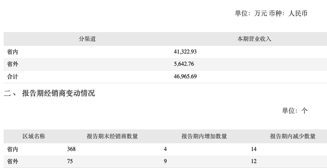 金种子酒销售区域性也很强,一直都是以安徽省内销售为主。省内经销商有368家,而省外经销商却仅有75家。金种子酒三季度经营数据公告显示,金种子酒2021年三季度省内营业收入4.13亿元,省外营业收入5643万元。对此,相关业内人士分析称,金种子酒销售区域性强,或许也是业绩增长乏力的一个重要因素。