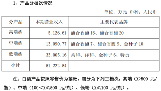 值得注意的是,华润介入后,金种子酒实施了全面改造,推出“一体两翼”品牌战略,即以馥合香为主线,配合醉三秋、柔和种子等产品。然而,高端酒比重依旧不足一成,中低端仍是业绩主体。