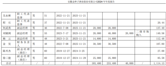 图注:金种子酒2024年董监高人员持股变动及报酬情况