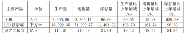 产销量方面,2021年福日电子手机生产量、销售量分别较上年增加 20.65%、15.28%,主要系控股子公司中诺通讯市场开拓取得一定成果,并克服了新冠疫情及缺料的影响,全年订单量较去年有所增长。LED 显示屏生产量、销售量分别较上年增加 196.79%、167.74%,发光二极管生产量、销售量较上年增加 19.42%、18.53%,主要系 2021 年市场有所转暖,公司市场开拓力度加大。
