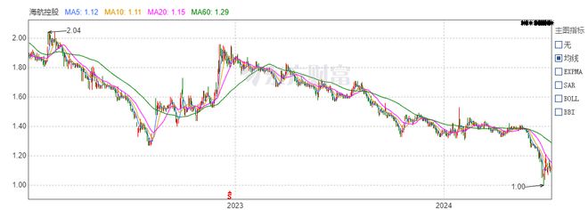 经历破产重整后,海航控股的股价一直处于低位,尤其是进入6月后,其股价逼近1元/股。