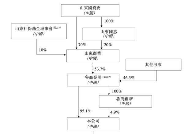 招股前的持股架构中,鲁商发展直接持股95.1%,通过其全资子公司鲁商创新持股4.9%,鲁商发展为控股股东
