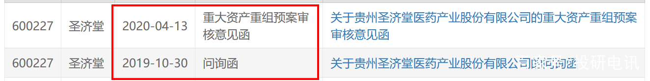 投研电讯信披质量研究员发现,圣济堂曾2次收到上交所问询函件,其中1份问询函、1份重大资产重组预案审核意见函。