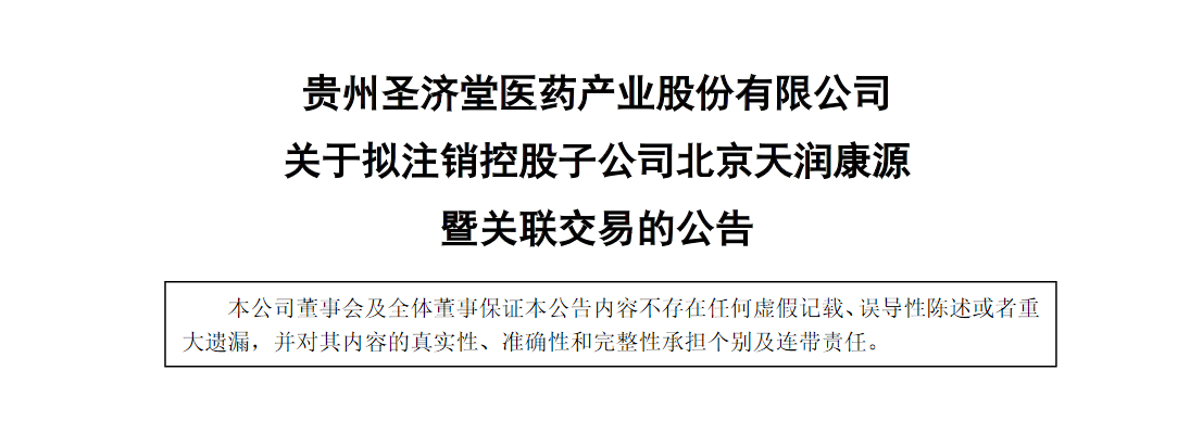 7月27日,圣济堂(600227.SH)发布公告称,公司董事会审议通过了《关于注销公司控股子公司北京天润康源暨关联交易的议案》,因受疫情等多方面影响致项目合作进展不顺,圣济堂与贵州赤天化集团拟注销合营公司北京天润康源。