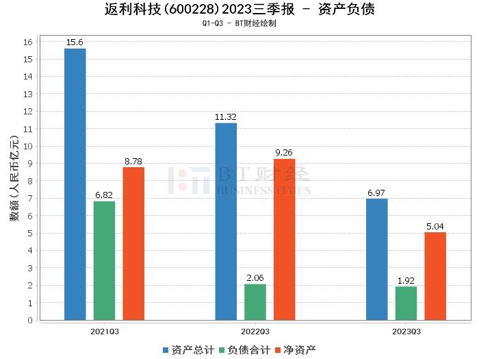 在资产负债方面,返利科技2023年三季度的总资产为6.97亿元,较上年度末的13.74亿元减少了49.27%。负债合计为1.92亿元,较上年度末的2.27亿元有所减少。净资产为5.04亿元,较上年度末的11.47亿元减少了56.03%。资产负债率为27.63%,较上年度末的16.5%有所上升。