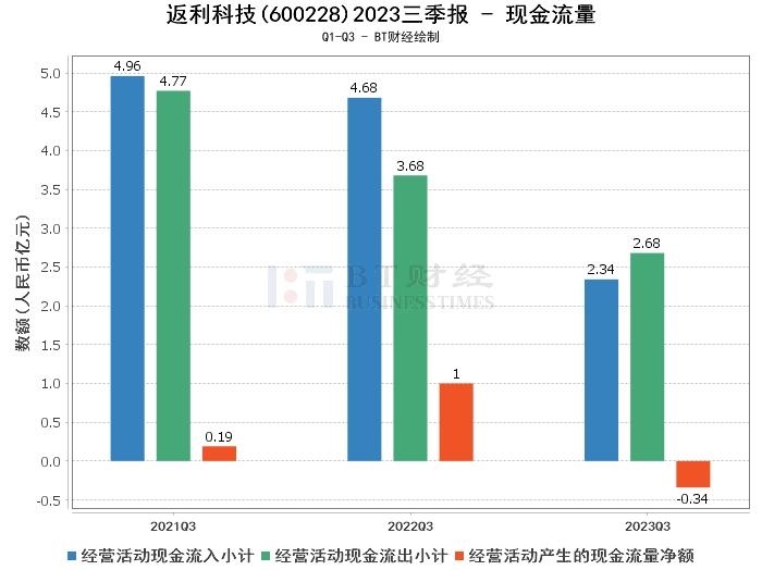 在现金流量方面,返利科技2023年三季度的经营活动产生的现金流量净额为-3362.72万元,较上年同期的9984.84万元下降133.68%。经营活动现金流入小计为2.34亿元,较上年同期的4.68亿元有所减少。经营活动现金流出小计为2.68亿元,较上年同期的3.68亿元有所增加。