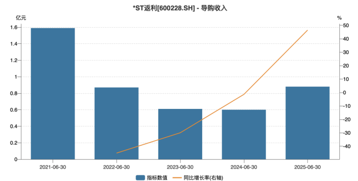2025年上半年,*ST返利(600228.SH)盈利能力持续承压,归母净利润同比由盈转亏。