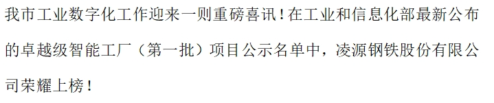 朝阳市首个!凌钢股份入选国家卓越级智能工厂公示名单