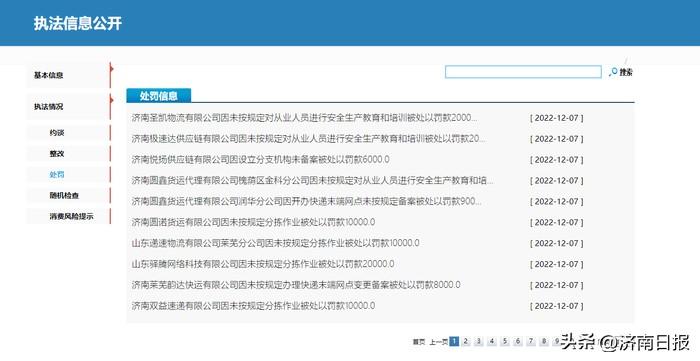 济南市邮政管理局日前在其官网发布了10多条处罚信息,对违规企业处以罚金并责令整改。圆通、极兔、韵达、申通、菜鸟、京东、递速等快递品牌旗下均有企业上榜,其中圆通旗下企业被处罚信息多达5条,成为被处罚次数最多的品牌。