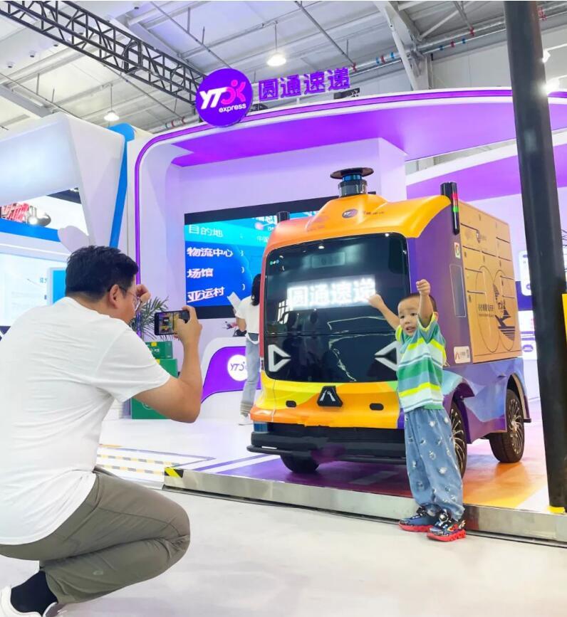 在北京首钢园区13号馆,圆通展台呈现出满满的杭州亚运元素:一条由杭州亚运主题色“虹韵紫”为装饰的跑道从圆通展台内伸出,尽头摆放着一台亚运主题涂装的无人车。赛事期间,在杭州亚运会主媒体中心、亚运村等场馆,都可以看到它的身影。