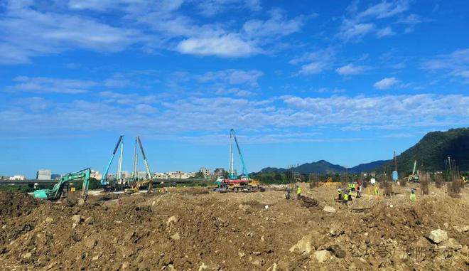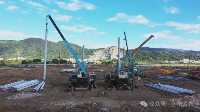 11月26日上午,在圆通速递广东(汕头)智创园项目施工现场,桩机、挖土机、运输车等工程车辆不停运转,打桩、回填等作业分区域同步进行,现场机械声轰鸣。200多名工人分布在各个角落各司其职,忙施工赶进度,工地一派热火朝天繁忙景象。