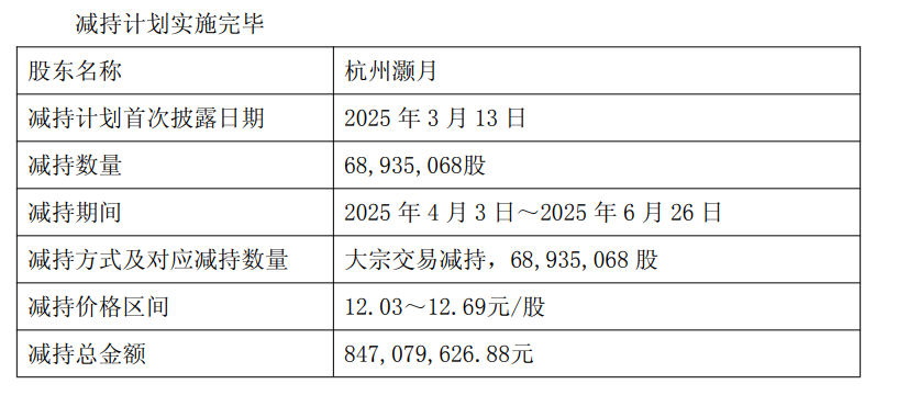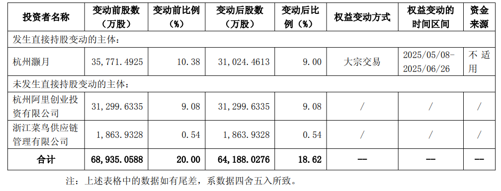 杭州灏月为阿里巴巴集团控股有限公司内企业,减持原因是出于自身发展战略及资金筹划。本次减持计划不会对公司治理结构及持续经营产生重大影响。