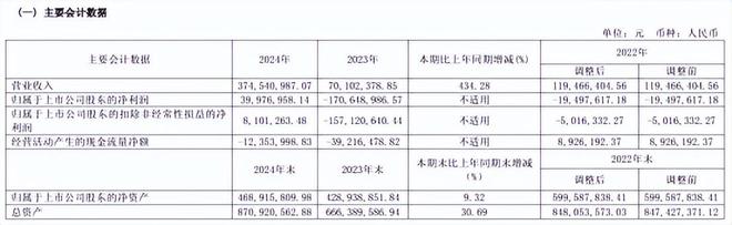 2025年4月30日,*ST科新发布2024年年报,数据显示,2024年*ST科新实现营业收入3.75亿元,同比增长434.28%;净利润为3997.7万元,扣非净利润为810万元。