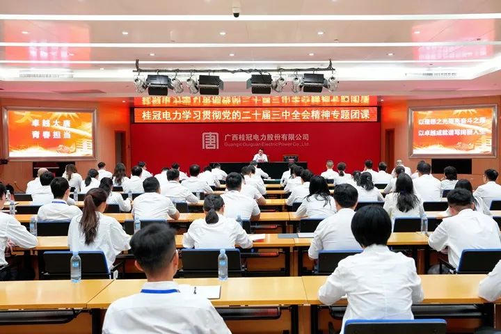 为进一步提升党建带团建实效,夯实基层团组织队伍建设,抓实青年精神素养提升工程,加强青年理想信念教育,进一步引导广大团员青年听党话、跟党走,12月5日,桂冠电力开展学习贯彻党的二十届三中全会精神专题团课,公司党委书记、董事长赵大斌为公司系统广大团员青年授课。